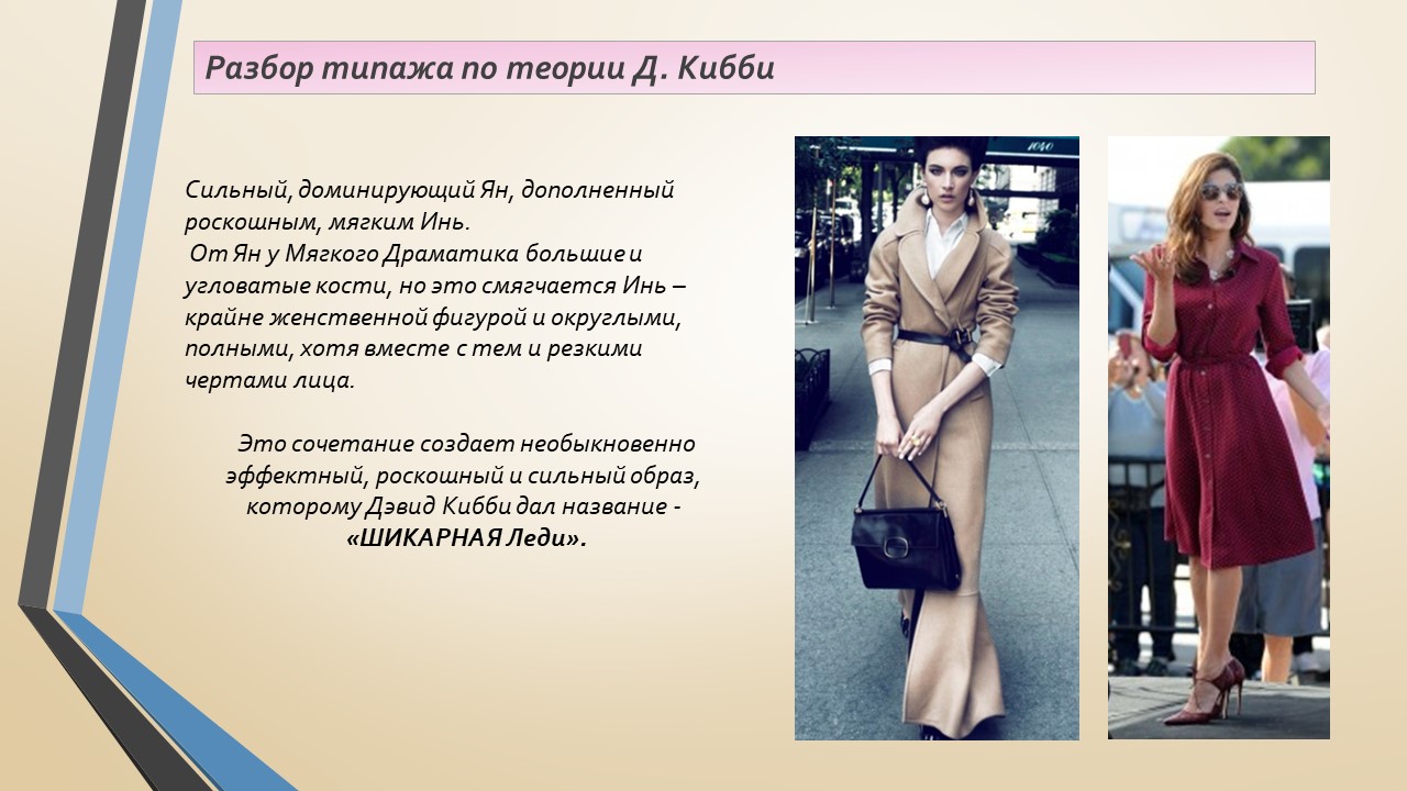 До книги стилю додано розділ «Стильовий типаж за Д. Кіббі» з докладним розбором ваших ліній і відповідністю типажу, а також у нових рекомендаціях стильових виразів буде враховано і ваш особистий (бажаний) стиль і рекомендації згідно з Д. Кіббі. (*розбір не можна замовити окремо від Книги Стилю).