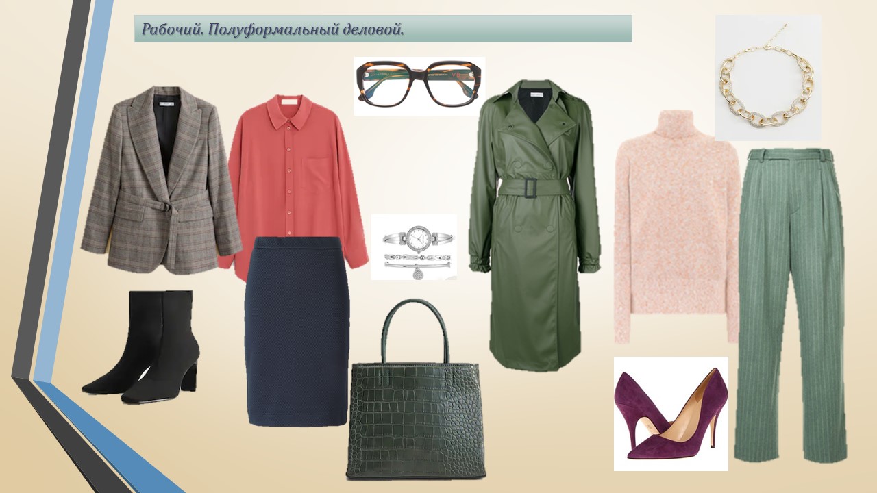 - Розробка базової візуальної концепції стильового вираження (добірка готових образів для різних випадків життя)