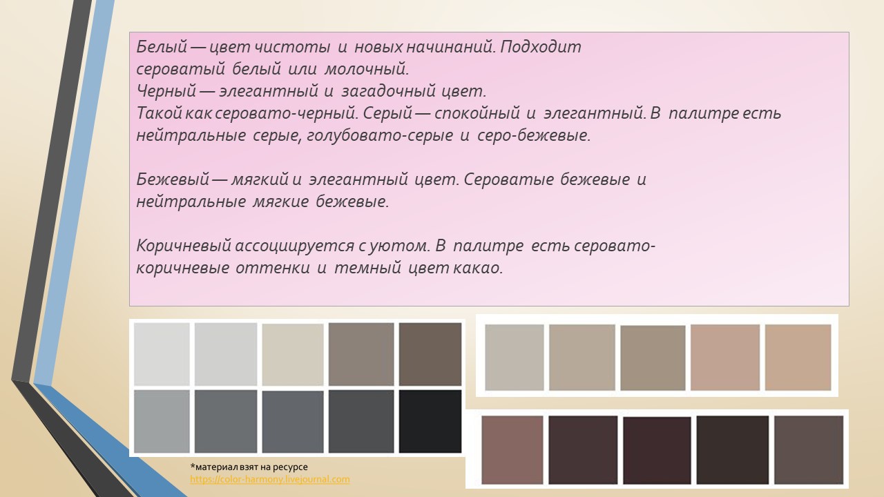 - Рекомендаціі що до колорів які в гармоніі з зовнішністю. Палітри і поєднання кольрів.